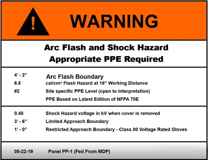 For example, arc-flash labels like the one shown include the arc-flash boundary, incident energy or PPE requirement, nominal voltage, and shock approach boundaries. The 2024 edition clarifies that these labels must also be durable for the installed environment, accounting for factors such as UV exposure, moisture, chemicals, and industrial wear.